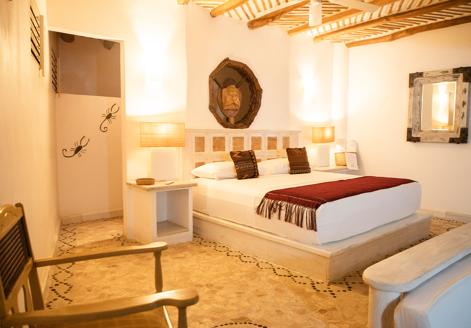 Cómoda habitación con cama King Size, terraza, balcón y una decoración única para complementar su belleza y comodidad.