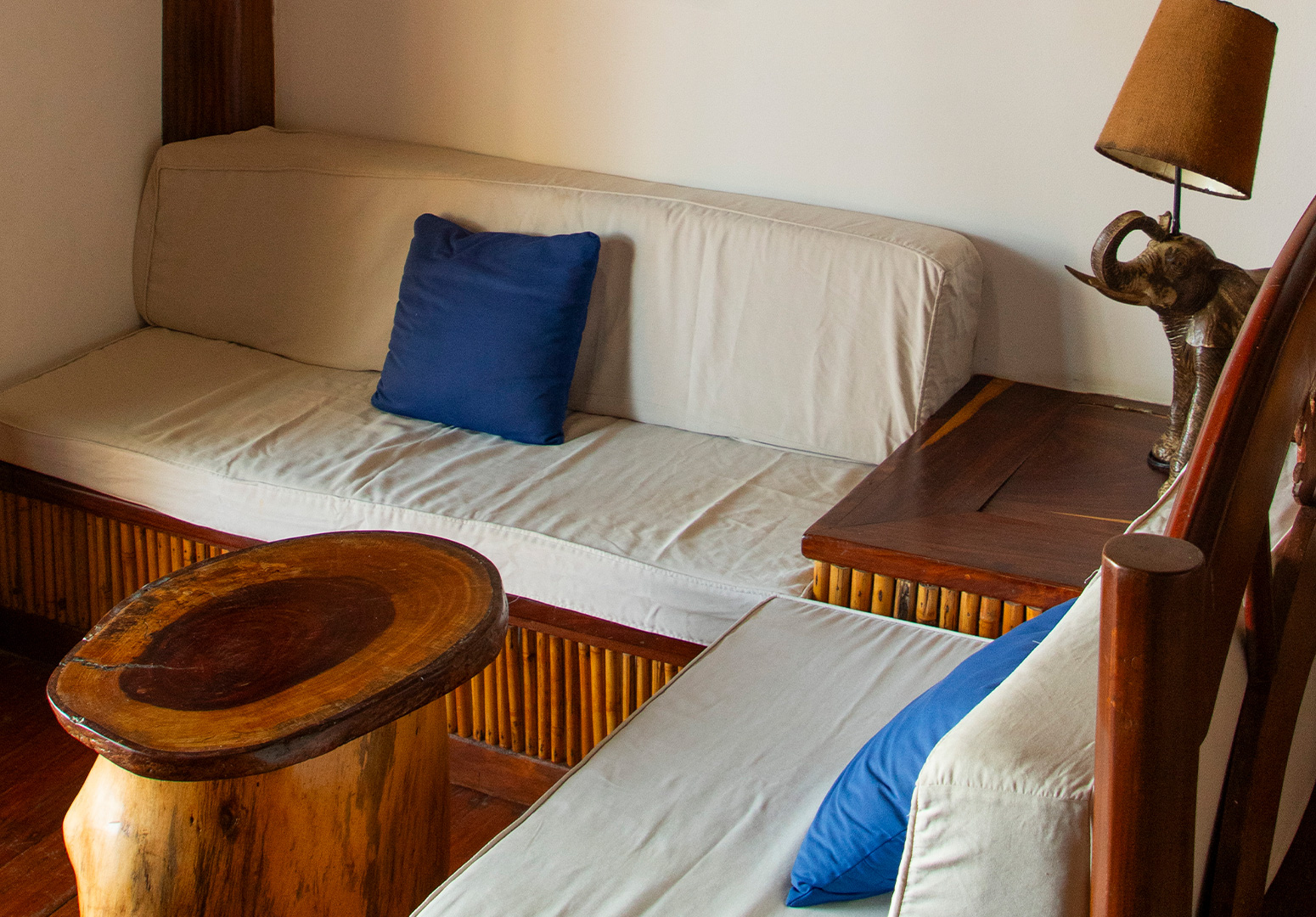 Pequeña sala con detalles bohemios para disfrutar de un té o café.