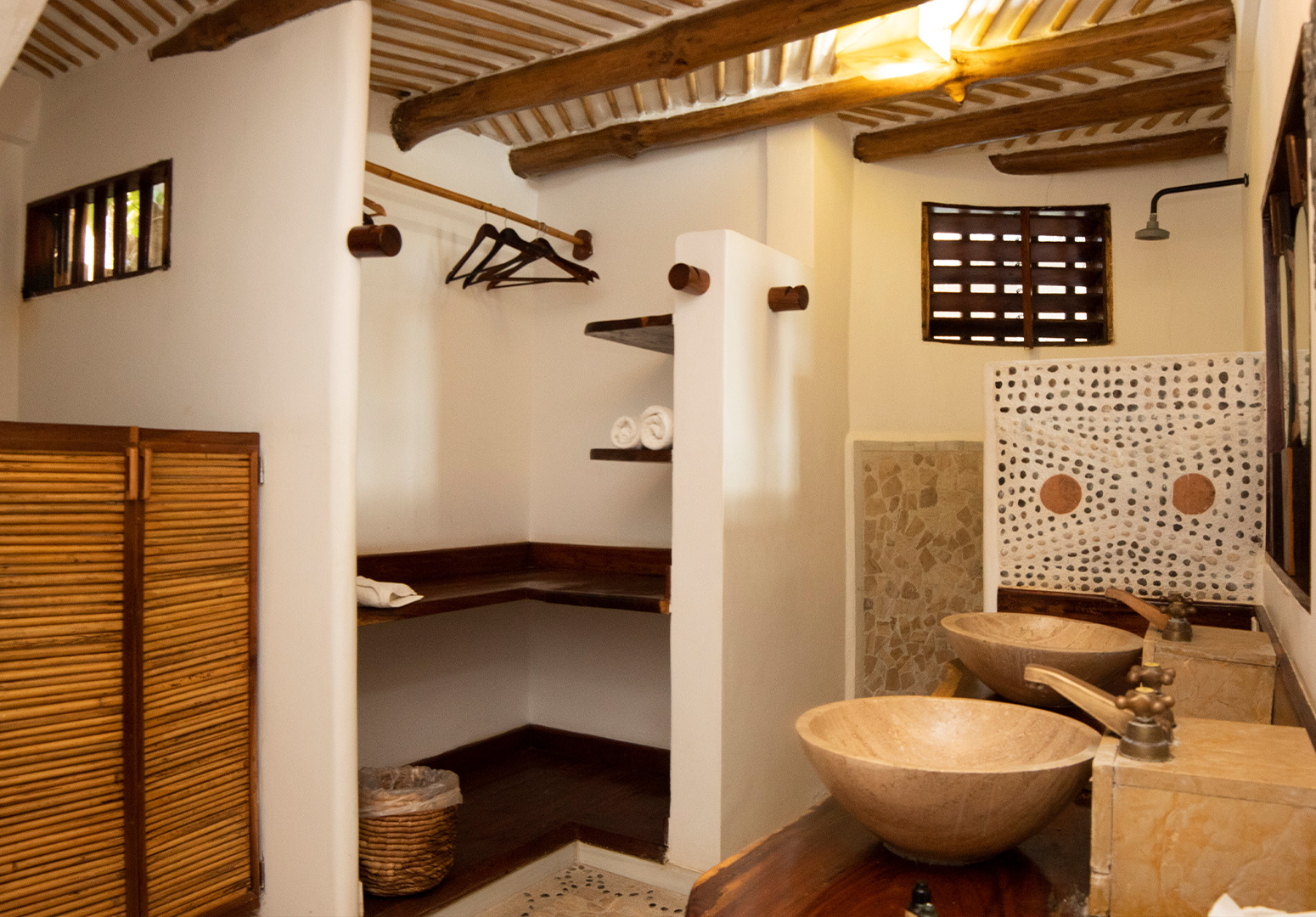 Baño con ducha de efecto lluvia y amenidades ecológicas.