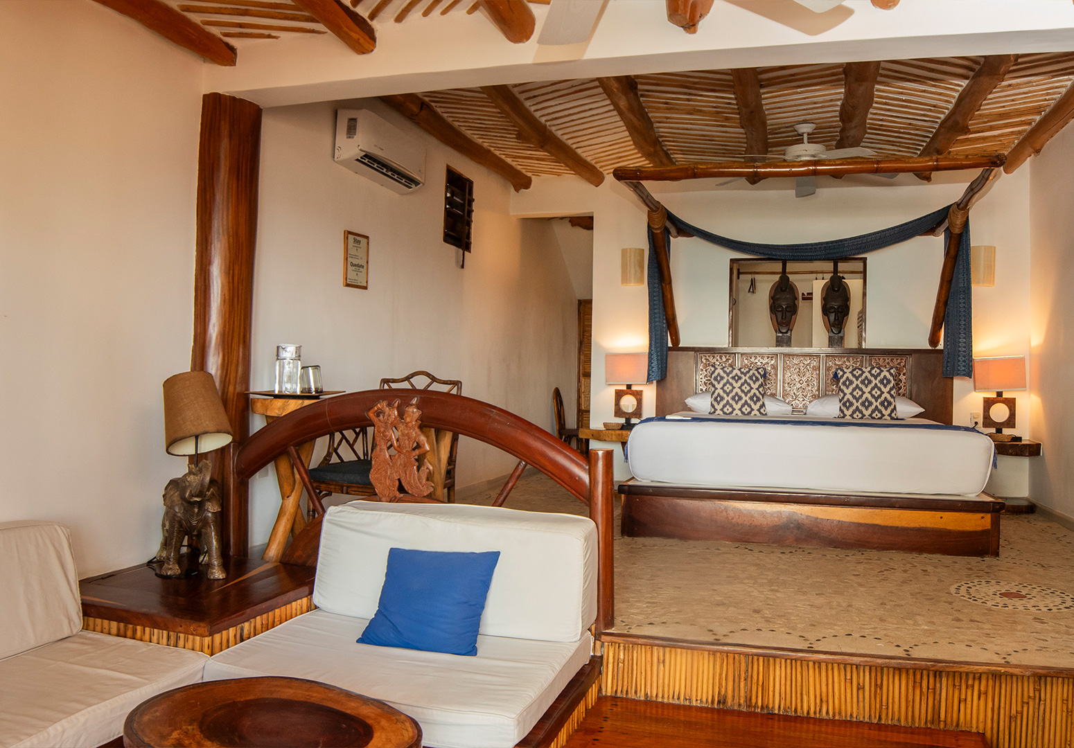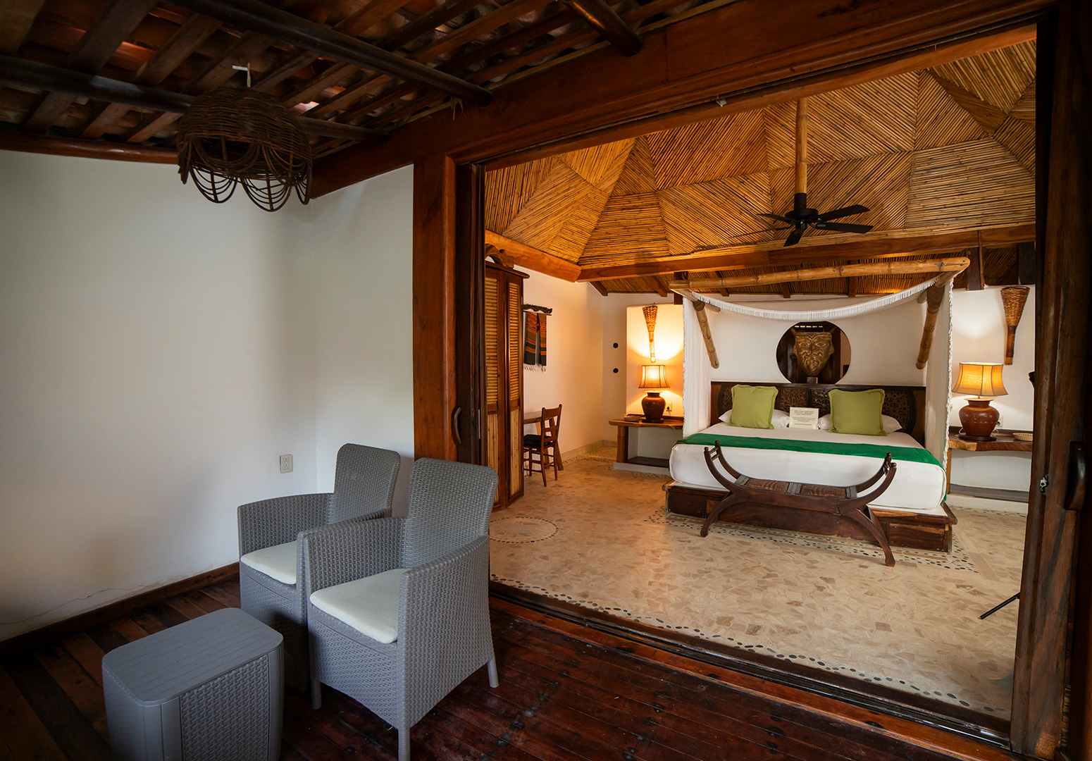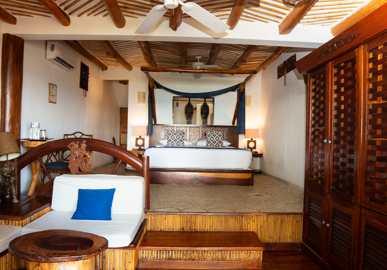 Cómoda habitación con cama King Size, terraza, balcón y una decoración única para complementar su belleza y comodidad.